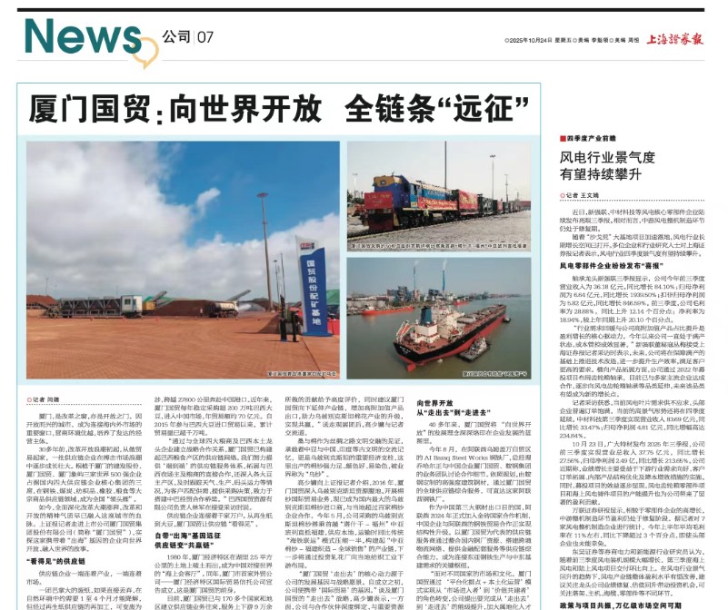 上海證券報(bào) | 廈門國(guó)貿(mào):向世界開(kāi)放 全鏈條“遠(yuǎn)征”。
